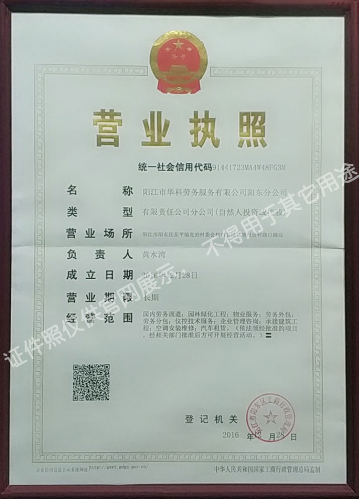 華科勞務服務有限公司是專業從事人事代理、勞務租賃、人力派遣及管理的綜合性服務機構,是首批獲得廣東省人力資源廳、陽江市勞動和社會保障局頒發人力資源許可證的合法單位。公司秉承“誠信務實、專業熱情、滿意第一、服務社群”的經營理念,在勞務派遣業務的基礎上,更致力于合同制工人(臨時工、實習生、假期工)方向發展,為用工企業及時輸送合格的各類人才,合理調配人力資源的有序流動,幫助求職者尋求更加滿意的就業渠道和崗位,切實維護求職者的合法權益。